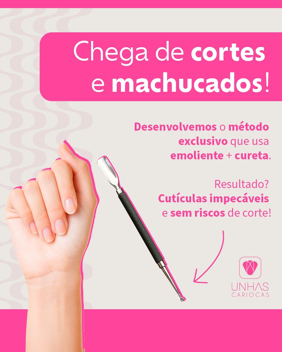 Remoção de cutículas com método exclusive que usa emoliente + cureta.